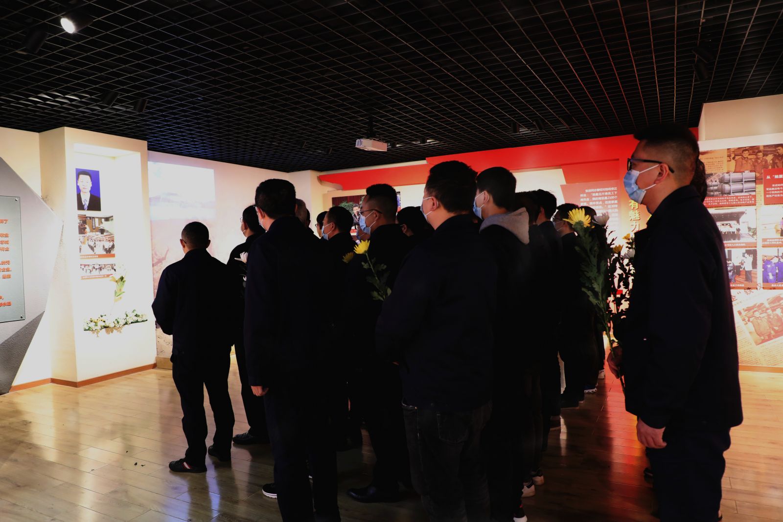 向張進(jìn)同志遺像鞠躬獻(xiàn)花,默哀追思,深切緬懷。