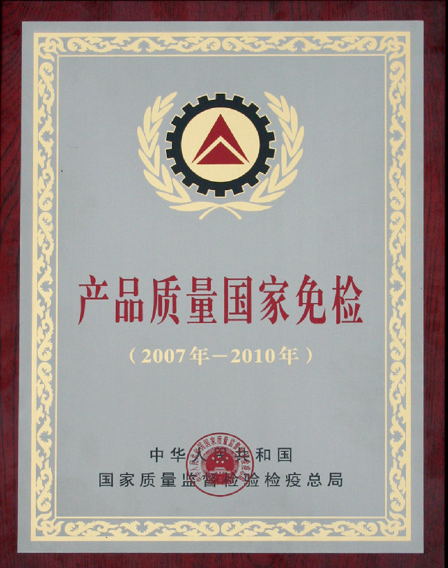 2007年-2010年產(chǎn)品質(zhì)量國家免檢